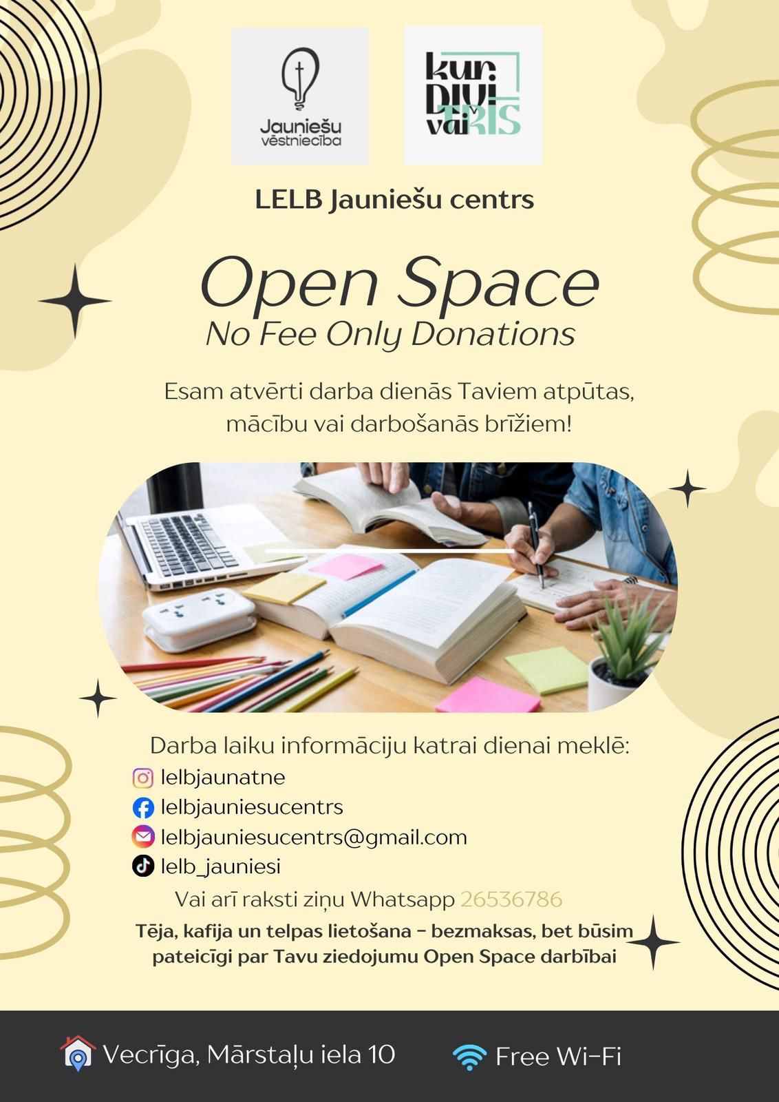 *pieejamas telpas atsevišķās darba dienās, kuras tiks izziņotas mūsu soc.tīklos.