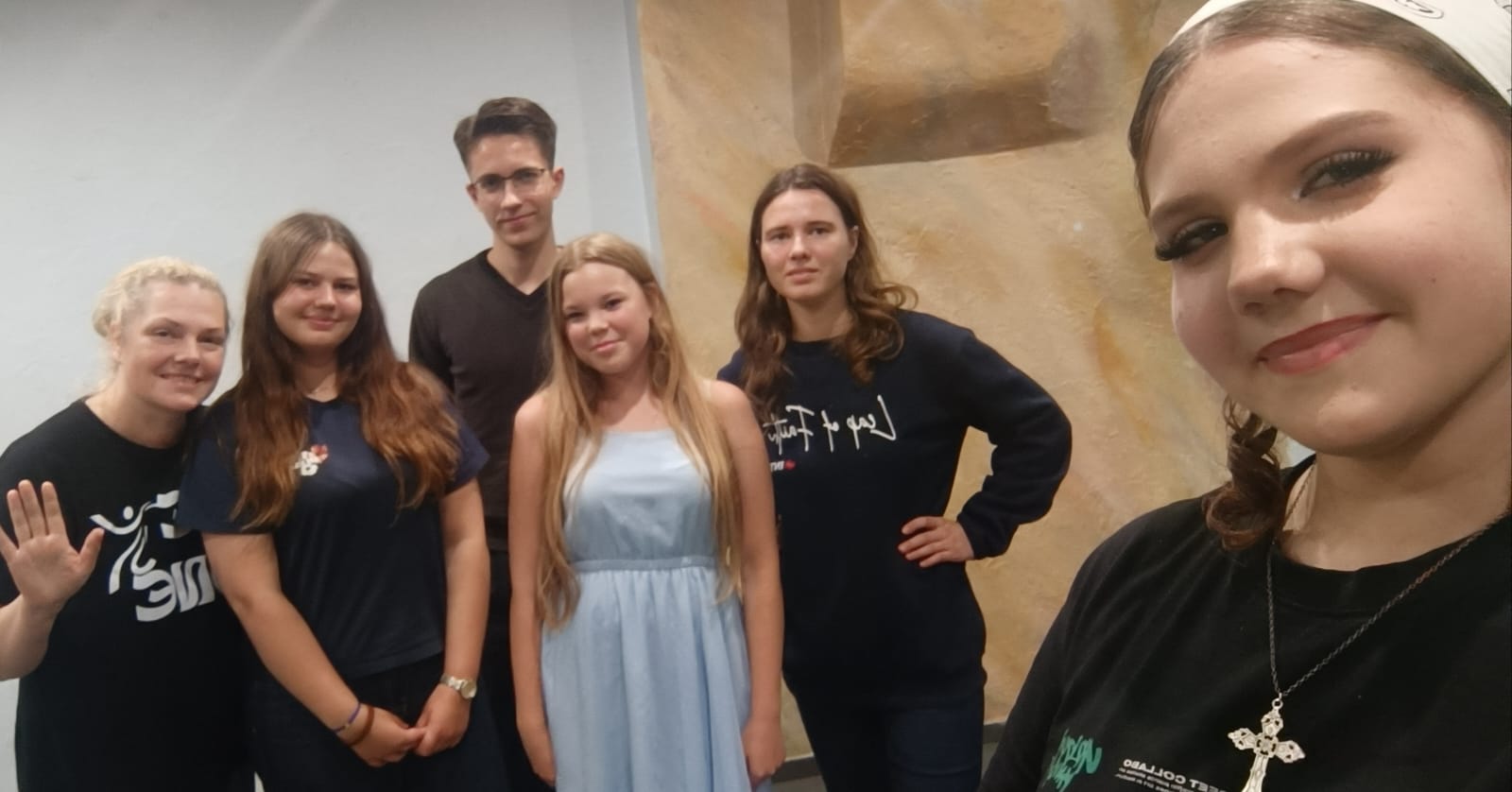 no kreisās: Leida Ozoliņa, Rēzija Zandberga, Roberts Križanovskis, Emīlija Liepiņa, Alise Klimkāne, Jasmīna Ozoliņa.