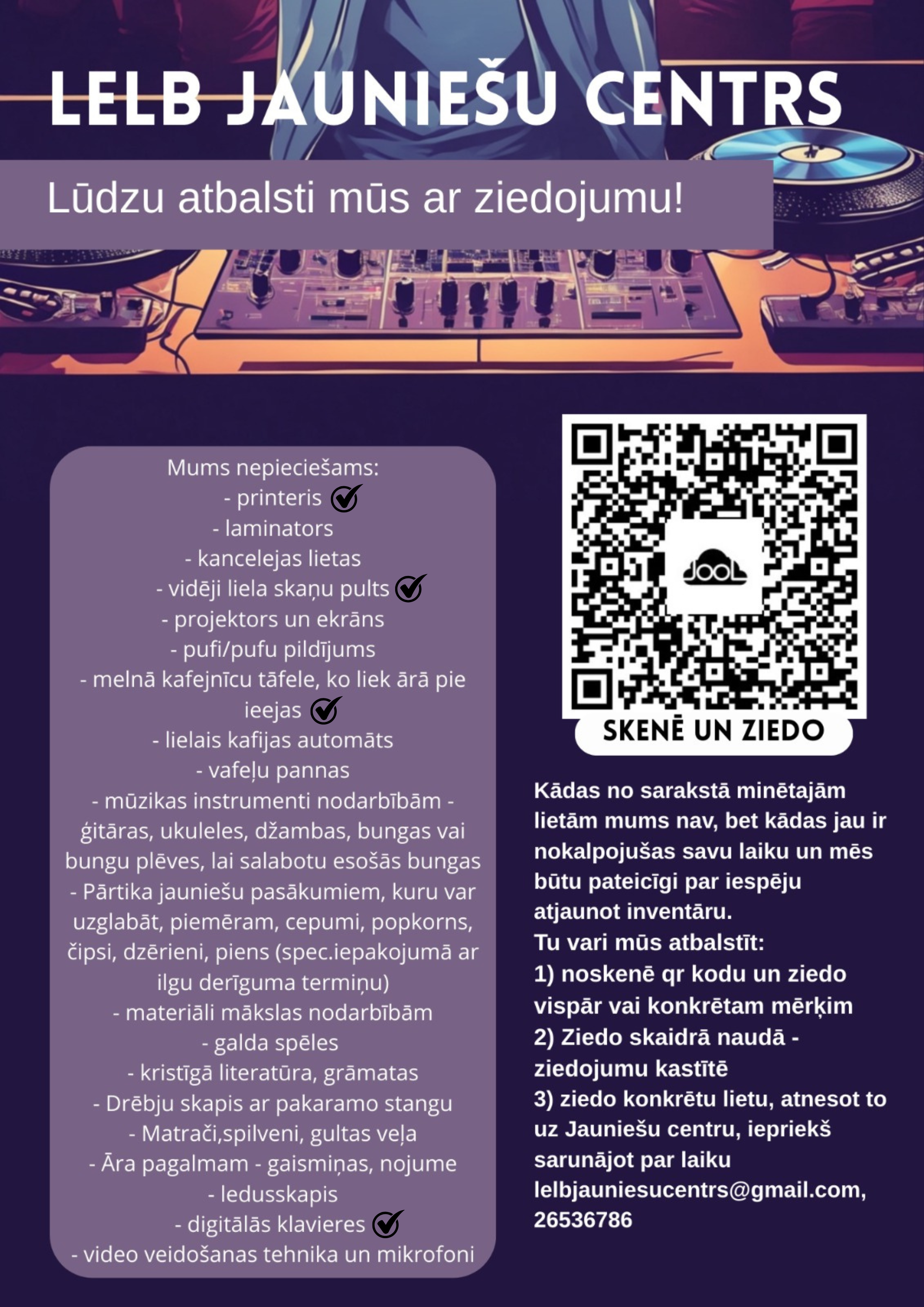 Atbalstām LELB jauniešu centra aktivitātēs un pateicamies par noziedoto