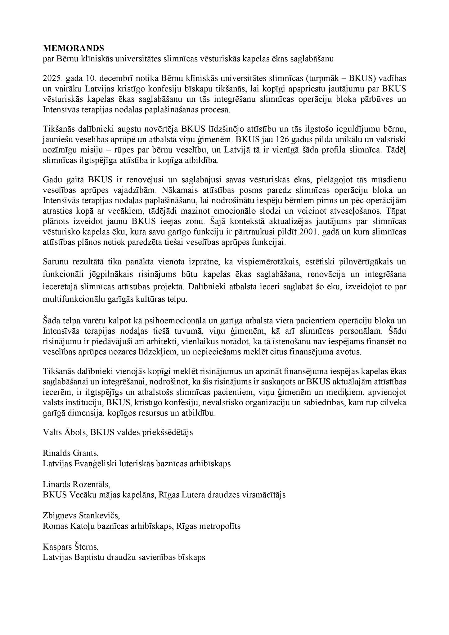 Aicinājums atbalstīt Bērnu klīniskās universitātes slimnīcas vēsturiskās kapelas saglabāšanu
