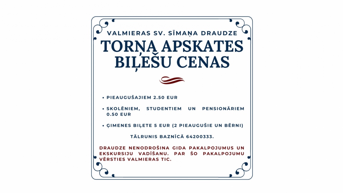 Baznīcas torņa apskates biļešu cenas4. marts 26.
